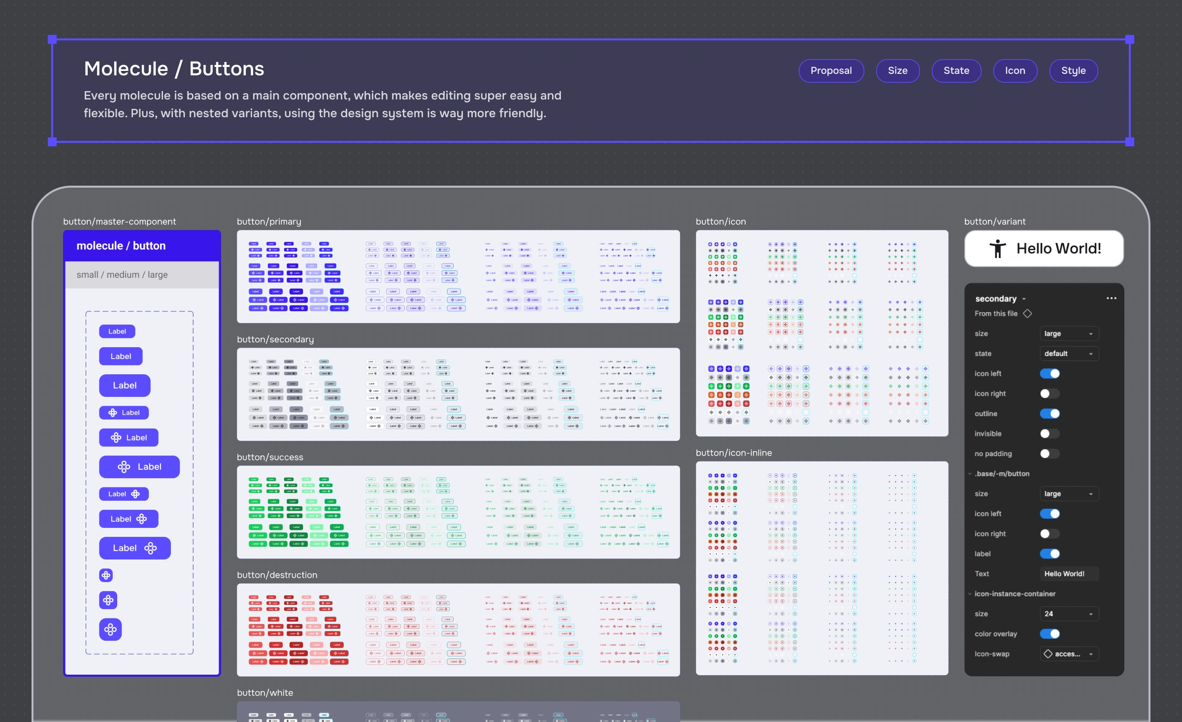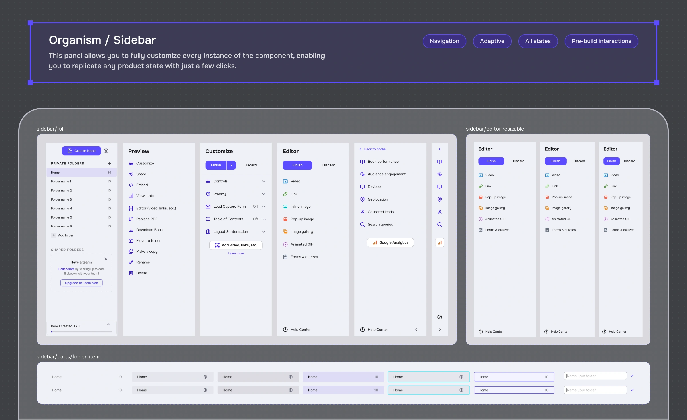 Component library + variants + interaction states.