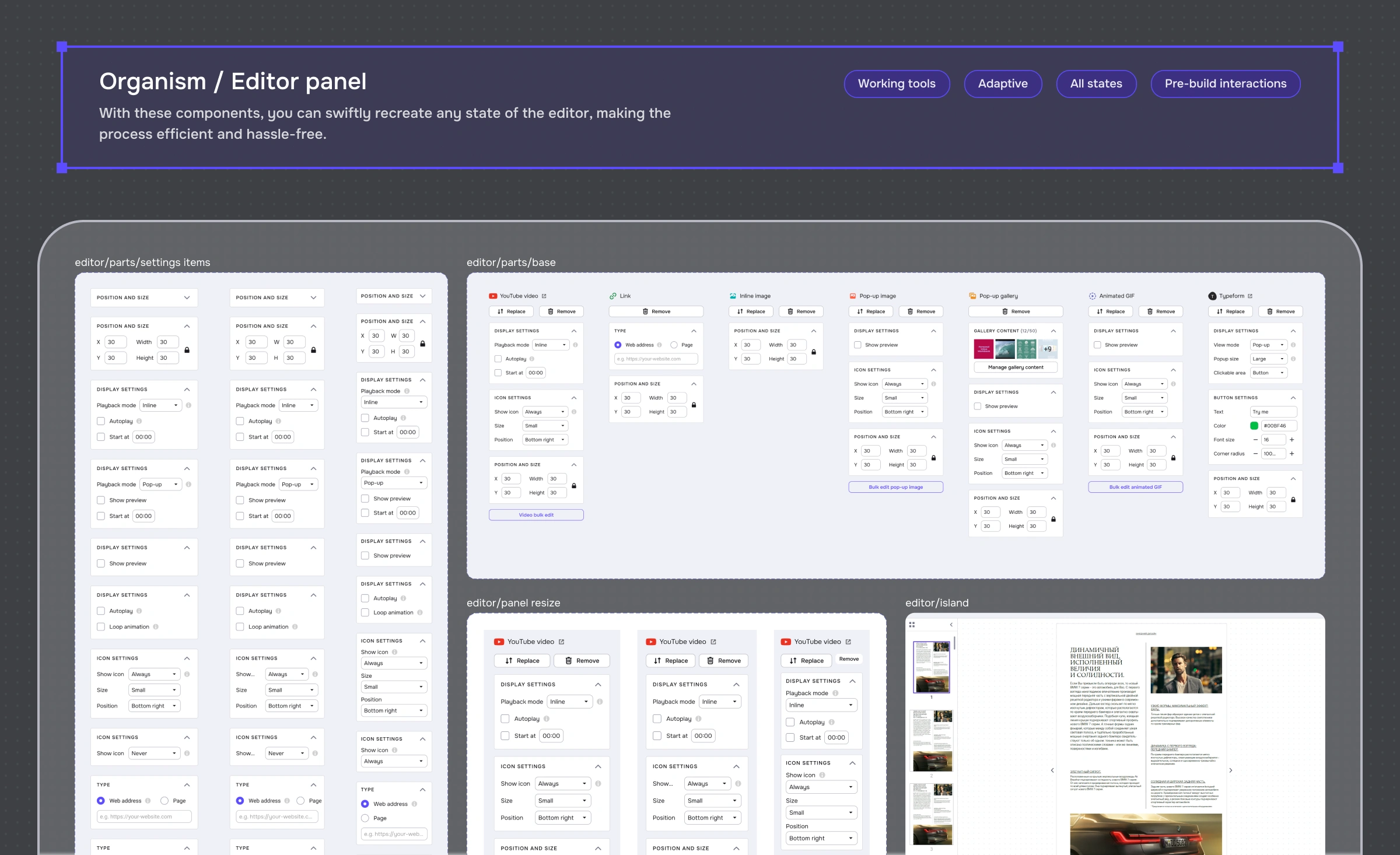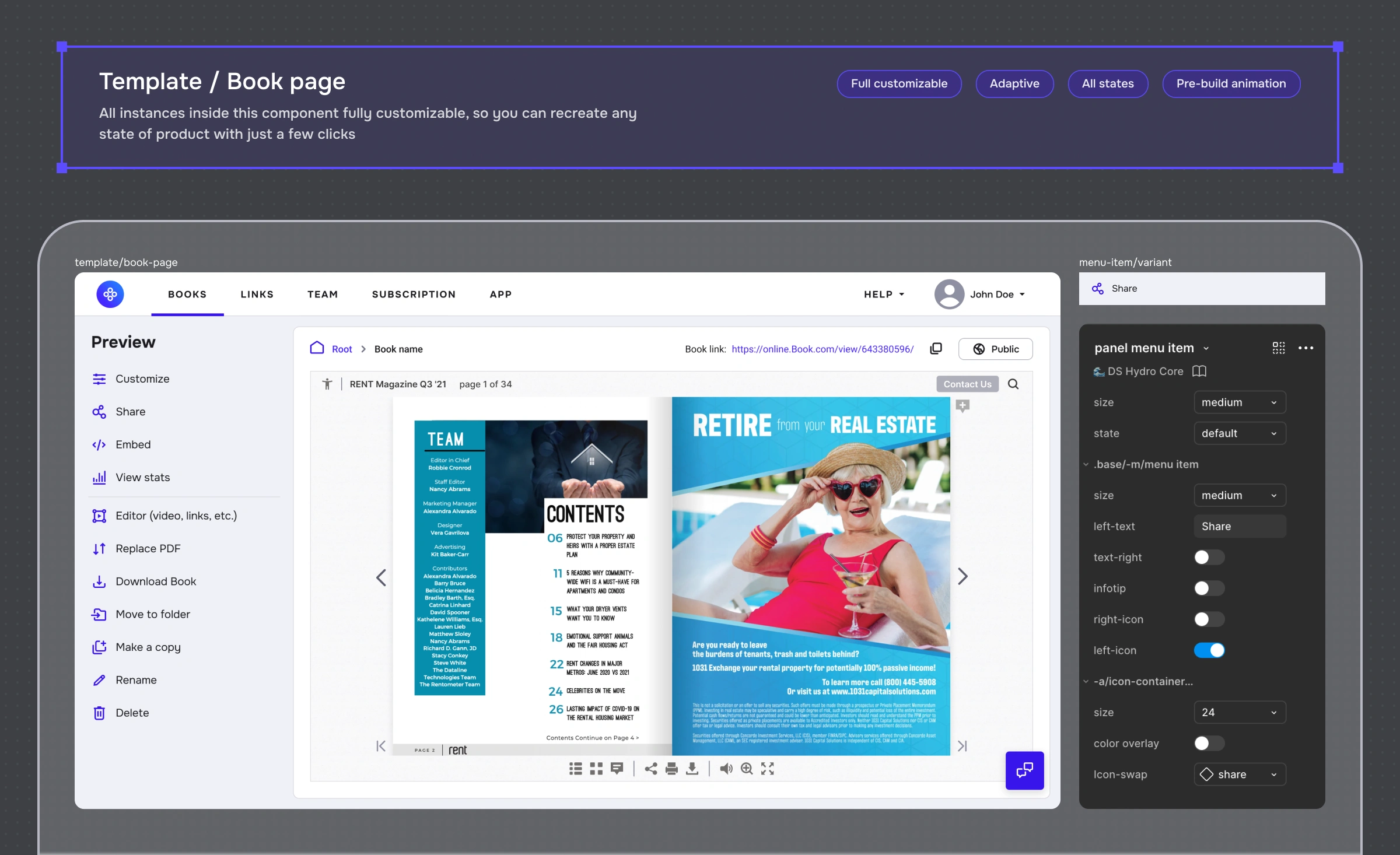 Screen templates with switchable states: I built templates for the main product screens where you can toggle into any user-visible state (loading, empty, error, permission, edge cases).